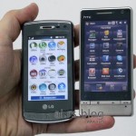 We are not certain about this phone. It does have the wow effect, since the keyboard is transparent and you can write by drawing letters on a transparent surface. 8MP camera, Google Services, but lacks GPS. It does pack, Bluetooth, WiFi, and interesting cube navigation. It seems that touchscreen is something that LG has yet to master, it lacks responsivnes. On a first pic we compare it to the HTC Touch Diamond 2. What do you think?