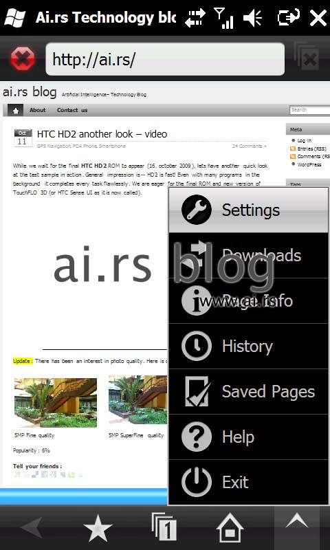 • I have the Omnia and to be honest these screen shots don’t impress me. It looks just like the Omnia with Ms Mobile 6.1. The problems I have are the e-mail always wants to run all of the sendmail headers and the Opera browser does not multi task well. WIFI is good. EVDO and the phone is good. The 5 MP camera is okay but zooming pixelates.