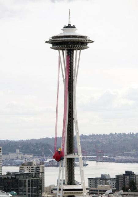 but except the excellent new game, have a look at their marketing campaign. This time Rovio attached a giant Angry Birds slingshot to the Seattle Space Needle!
