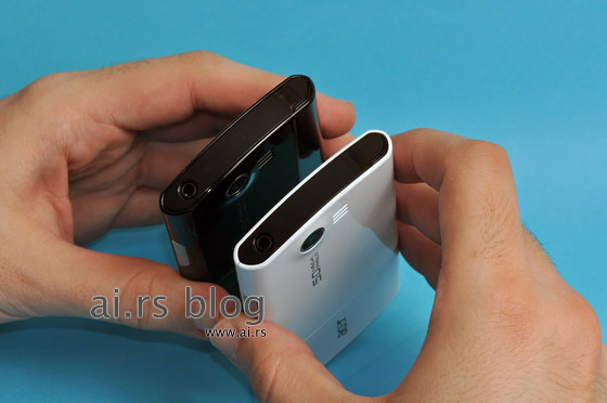 Navigation buttons are part of the case, and they are touch-sensitive. They light up when any of them is touched, and turn off after a couple of seconds. Nice, but it can be a little bit impractical. If you try to hit one of the buttons during the night, you’ll need to be careful, or you will hit its neighbor. On the left side of device there is power button, and on the right side, there are volume up and down, and camera buttons. They are rather small, but still accessible. On top of the casing, there is 3.5 mm stereo audio jack (really practical), and three hidden indicators. These indicators only light up once there is incoming or missed call, unread message, or when battery is low or phone is charging. Again, really practical and beautiful. On bottom of the phone, there is mini USB connector covered with plastic plug. Thumb up for mini USB because of its convenience, and thumb down because of plastic plug. Plug feels like it will break off any second.